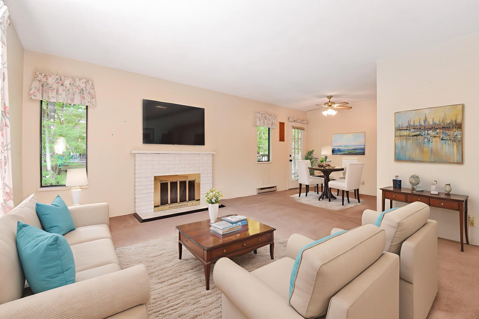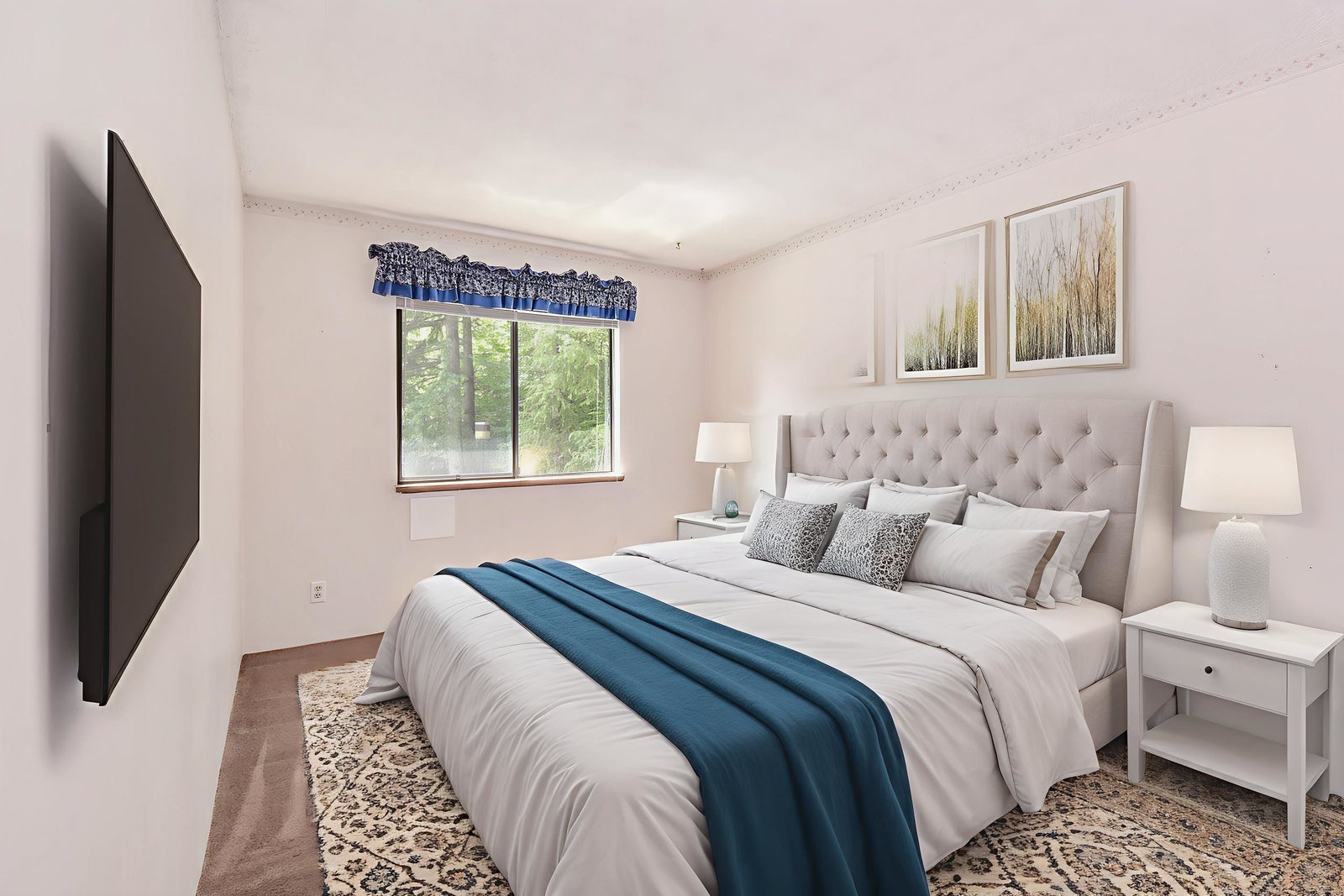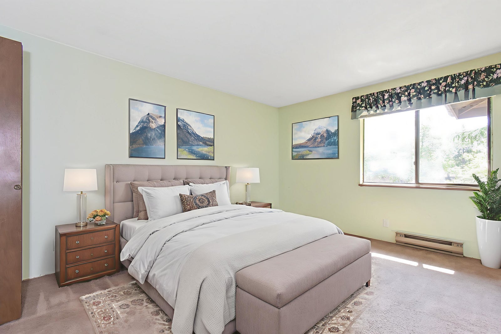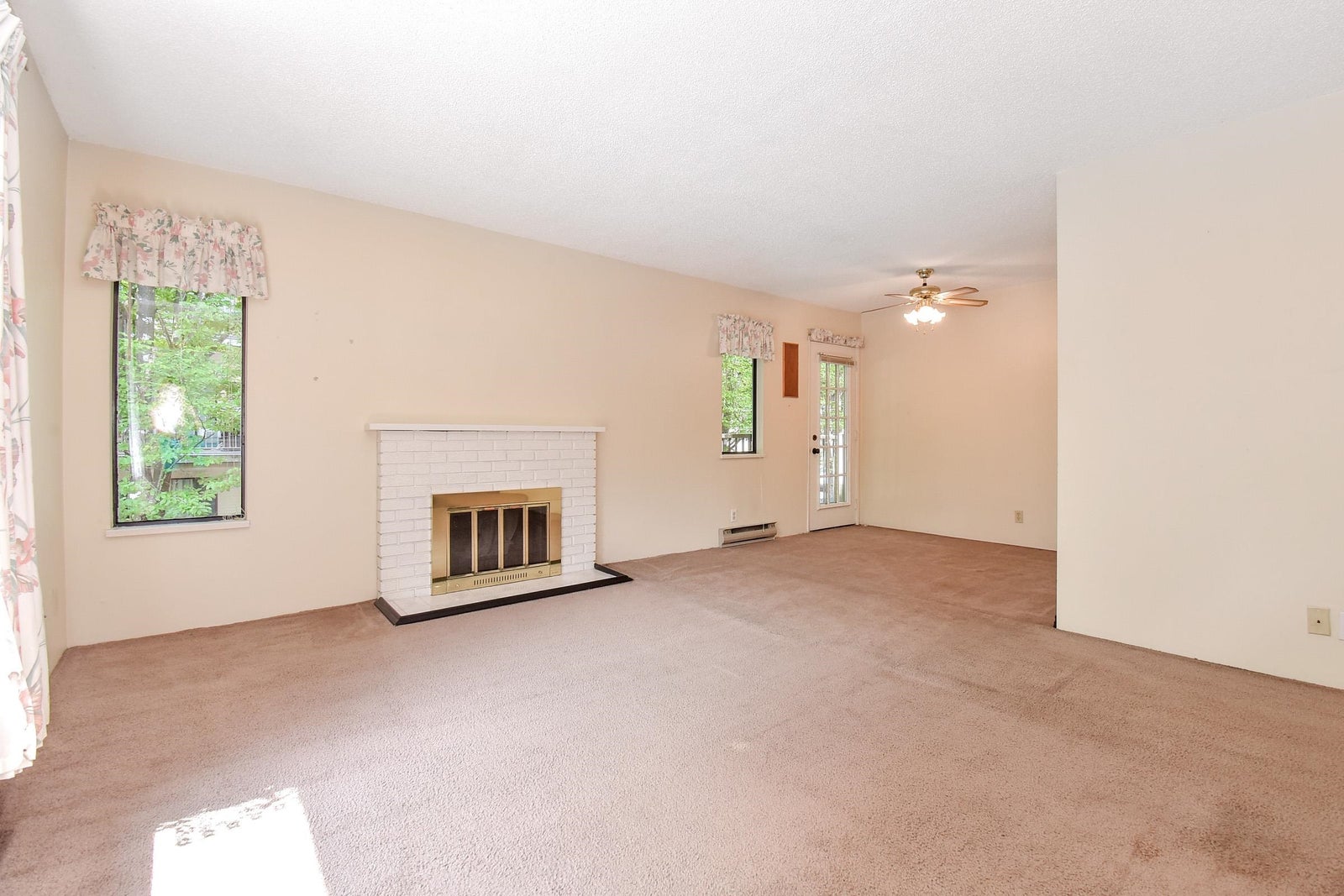 Upper-Level Corner Unit in Lincoln's Gate! Located in the heart of Guildford, this bright and spacious home offers 2 large bedrooms and 1.5 bathrooms. The primary bedroom features a walk-in closet and private 2-pc ensuite. The open layout includes a generous living room with cozy fireplace, dining area, and is adjacent to kitchen. Step outside to a large fenced patio--private and peaceful, surrounded by mature greenery. Great family-friendly community with fantastic amenities, including an outdoor pool, and sauna. Enjoy the convenience of being just minutes to Highway 1, Guildford Recreation Centre, Guildford Town Centre, and only a short walk to Holly Elementary. This welcoming layout is ready for your personal touch--bring your renovation ideas. Call now to View!
