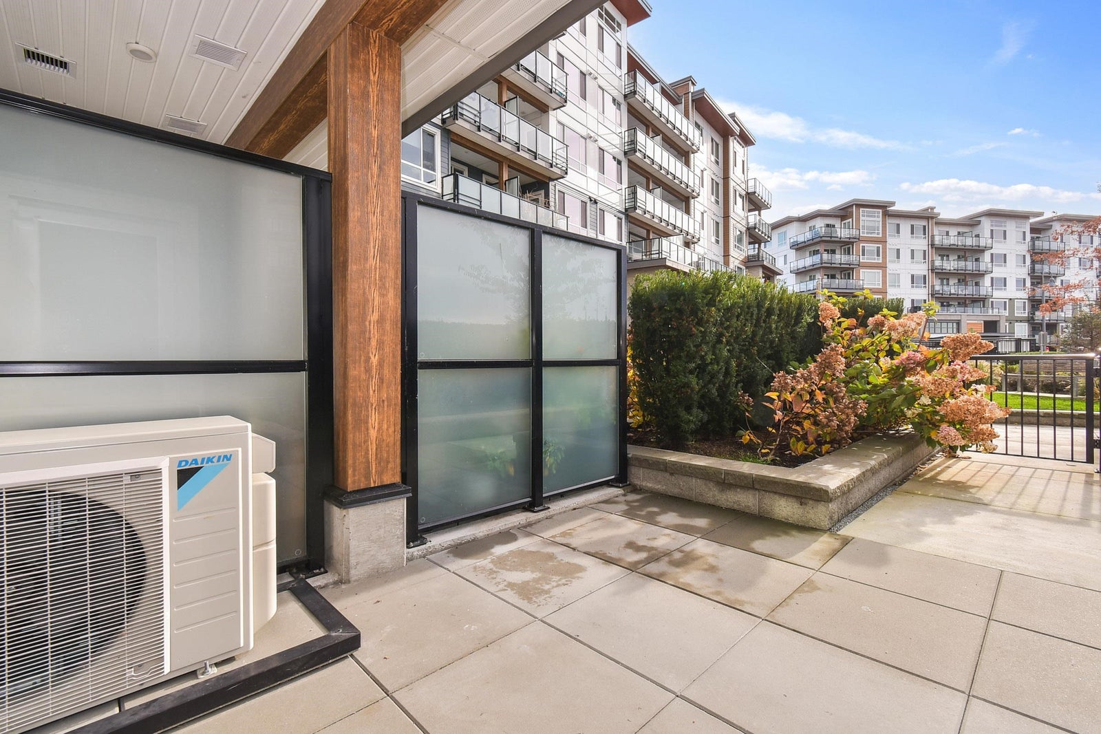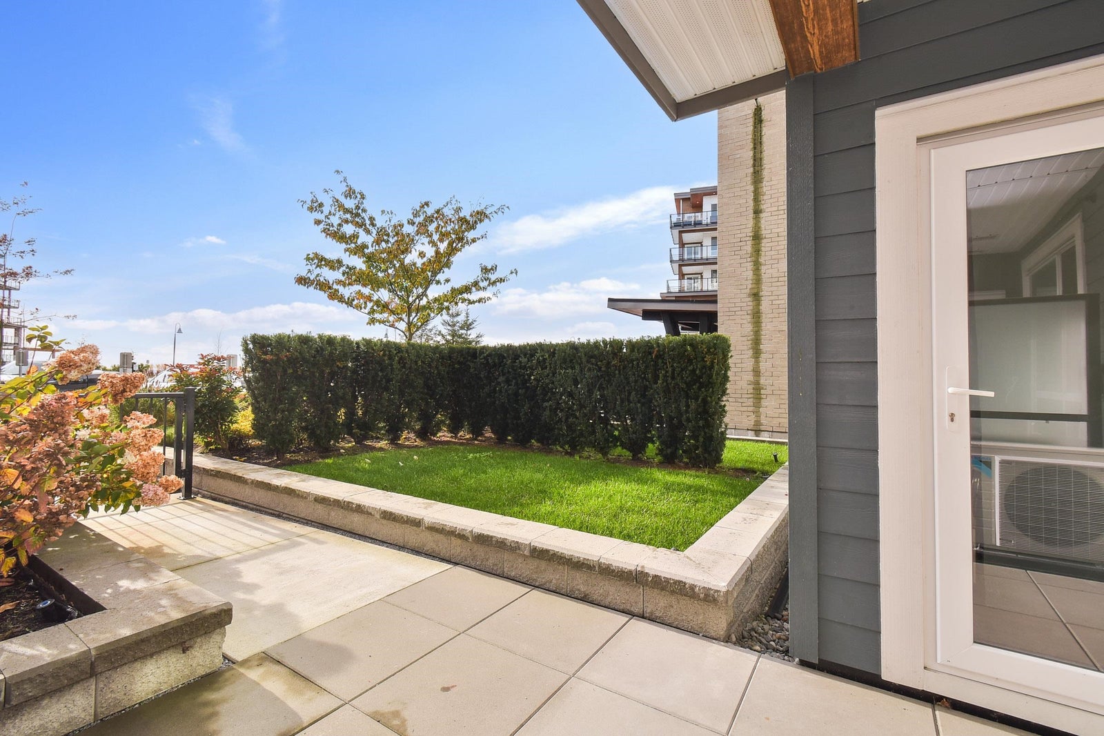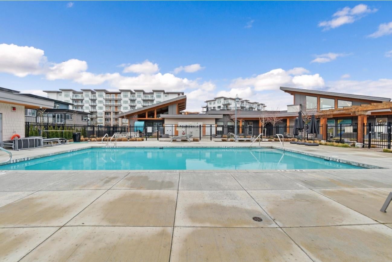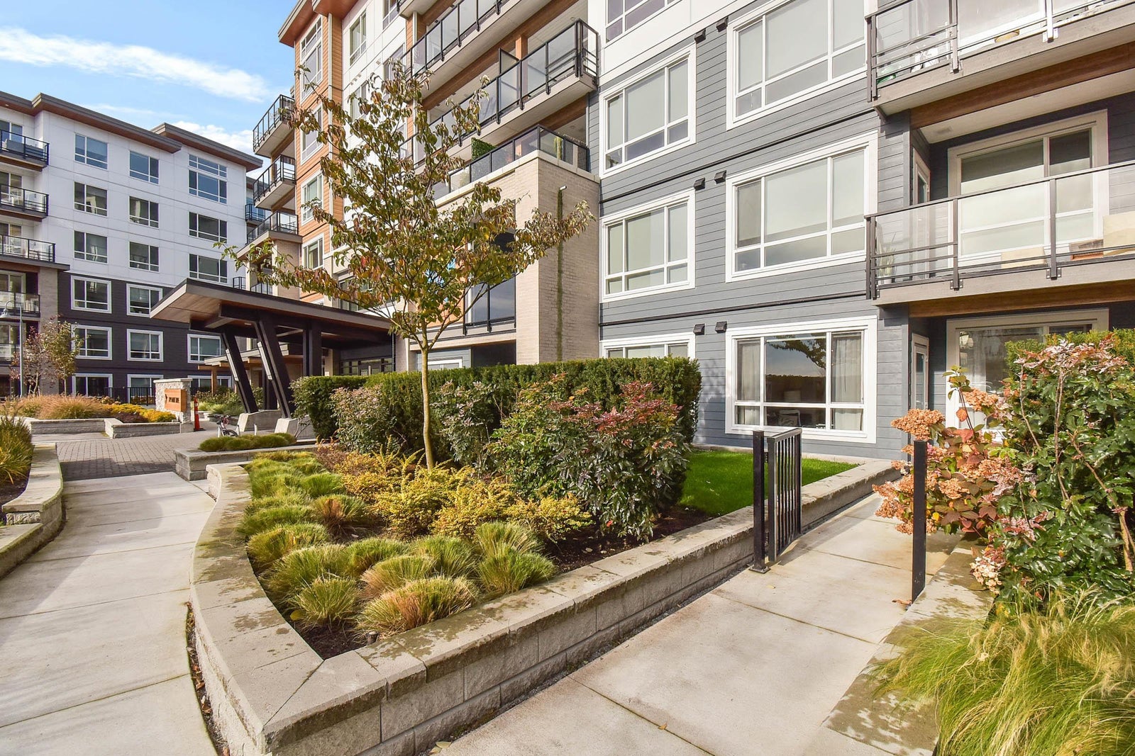 SOUTH FACING GROUND FLOOR UNIT AT SALT & MEADOW! Welcome to this stunning home on the spectacular shores of the Salish Sea. Offering a perfect blend of luxury & coastal living, this spacious 1 Bed + Den residence features a walk-in closet & stylish 4-piece bath. The bright open-concept layout showcases gorgeous laminate & tile flooring/quartz counters/SS appliances. Enjoy waterfront living at it's finest - morning jogs or sunset strolls along the miles of scenic beach trails & the new seaside boardwalk in the vibrant master-planned community. Relax or entertain on your Large S-facing patio, ideal for morning coffee or evening unwinding. Residents enjoy exclusive access to the resort style "Beach House" amenities, including an outdoor pool/hottub/gym/yoga/kid zone.1 Parking & Storage Unit.