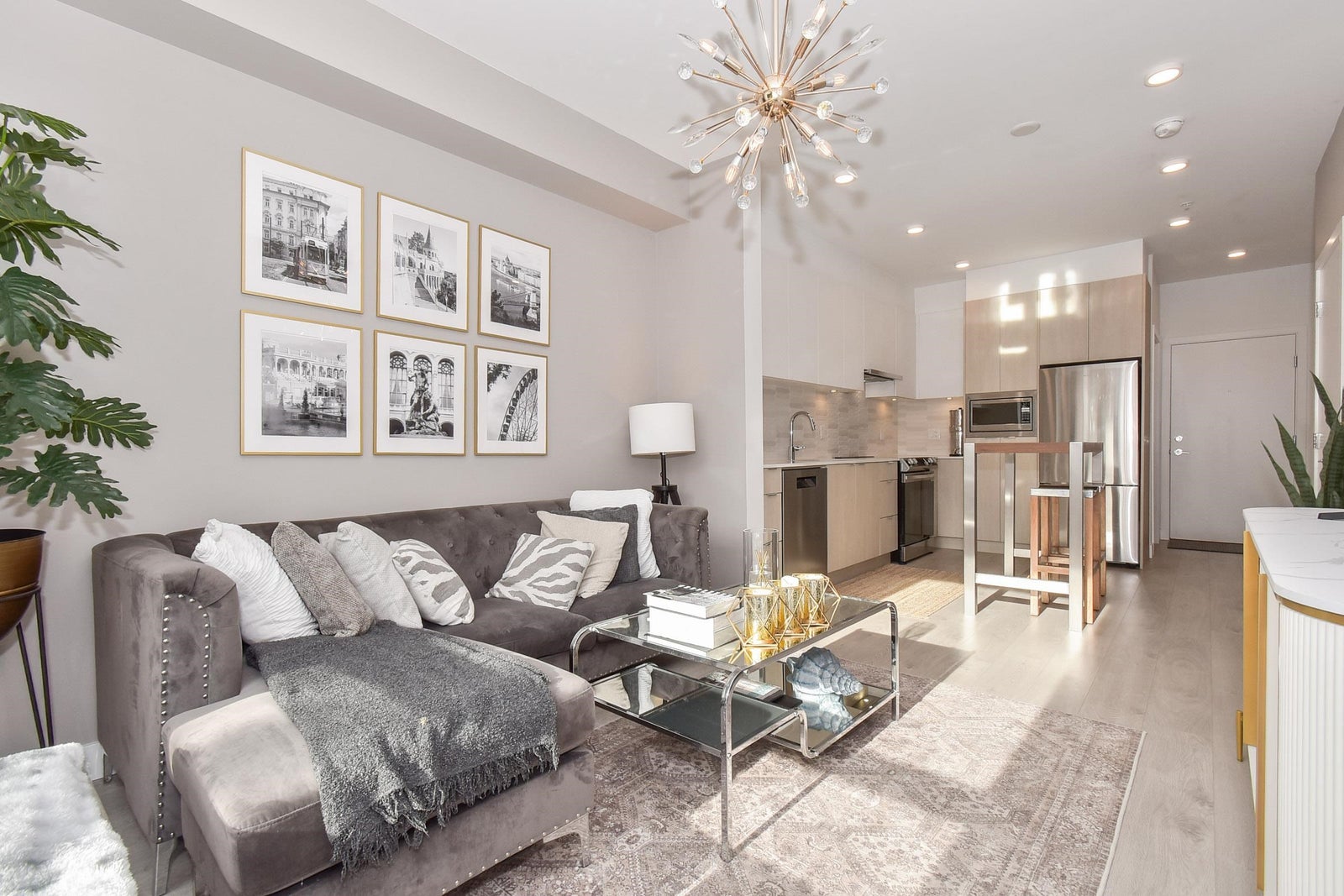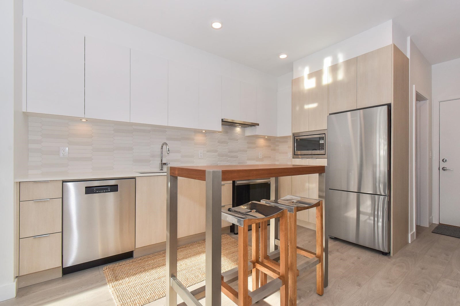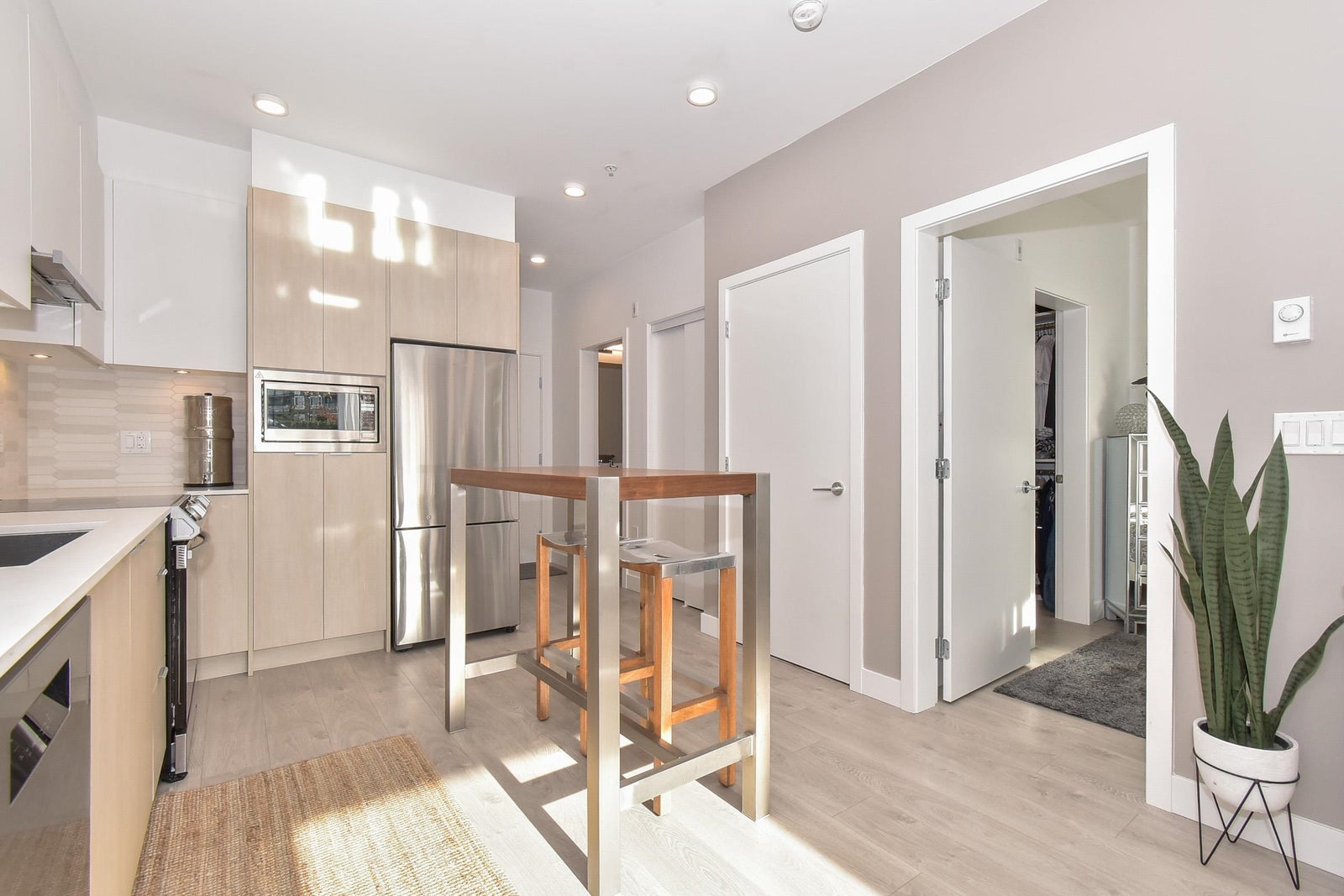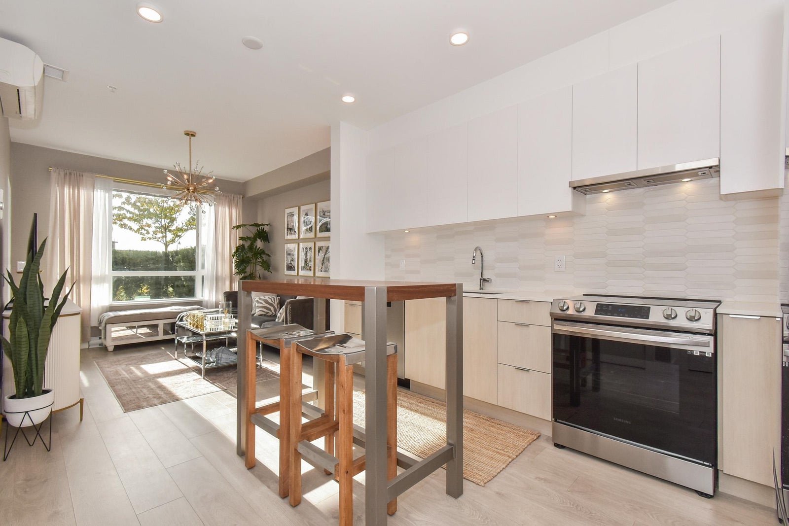 SOUTH FACING GROUND FLOOR UNIT AT SALT & MEADOW! Welcome to this stunning home on the spectacular shores of the Salish Sea. Offering a perfect blend of luxury & coastal living, this spacious 1 Bed + Den residence features a walk-in closet & stylish 4-piece bath. The bright open-concept layout showcases gorgeous laminate & tile flooring/quartz counters/SS appliances. Enjoy waterfront living at it's finest - morning jogs or sunset strolls along the miles of scenic beach trails & the new seaside boardwalk in the vibrant master-planned community. Relax or entertain on your Large S-facing patio, ideal for morning coffee or evening unwinding. Residents enjoy exclusive access to the resort style "Beach House" amenities, including an outdoor pool/hottub/gym/yoga/kid zone.1 Parking & Storage Unit.
